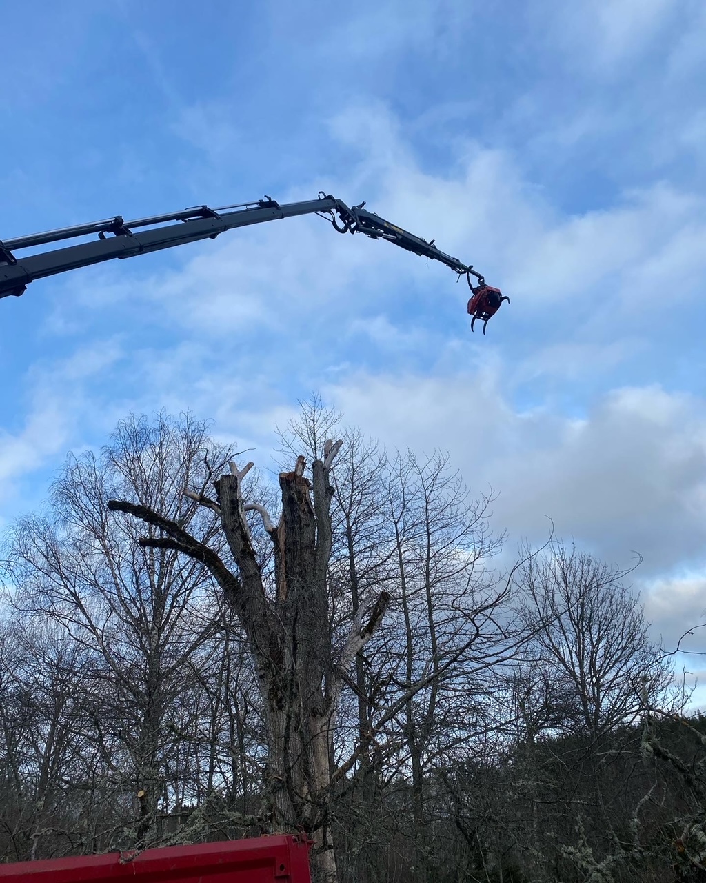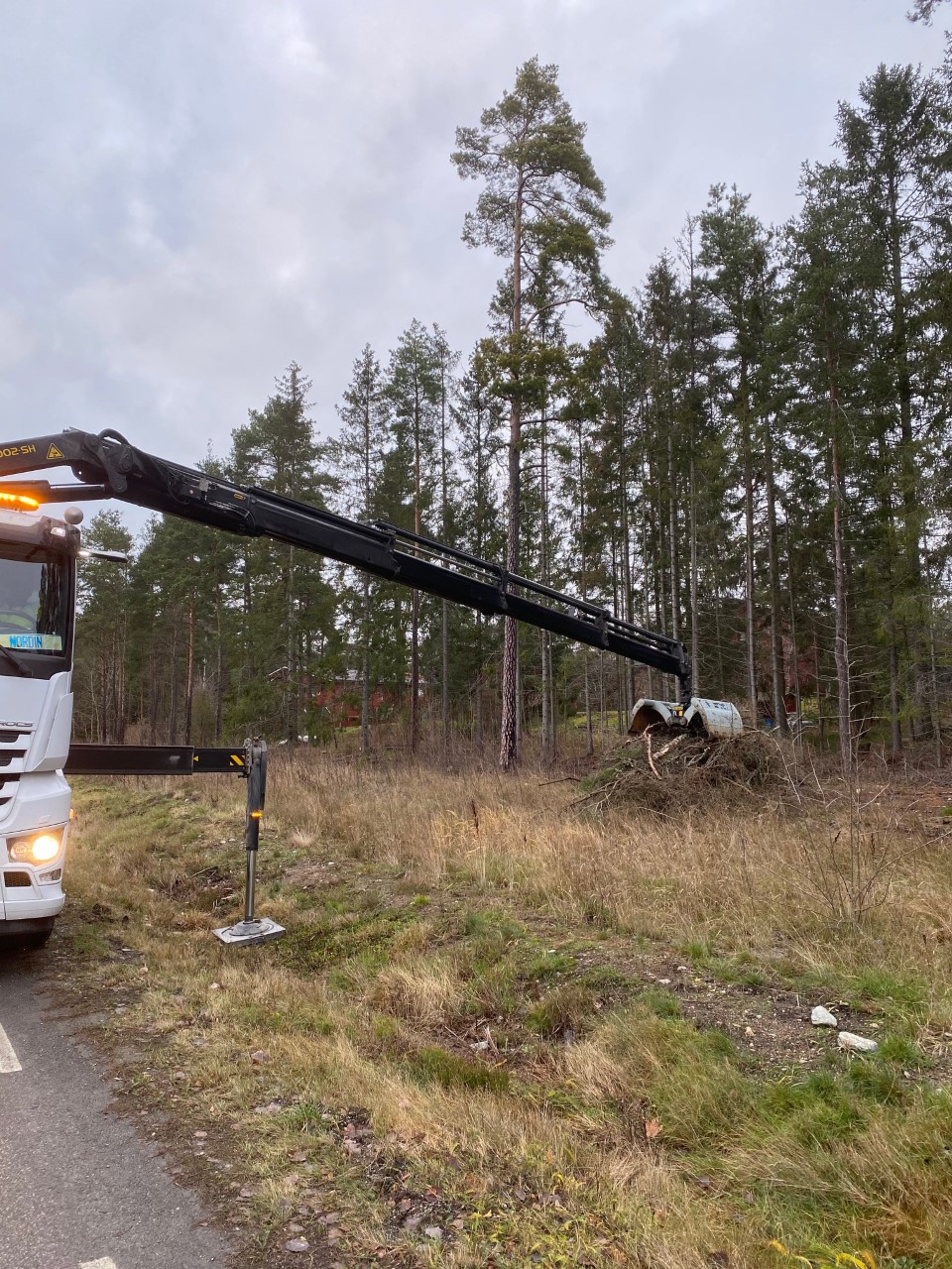 Trädfällning med kranbil Stockholm